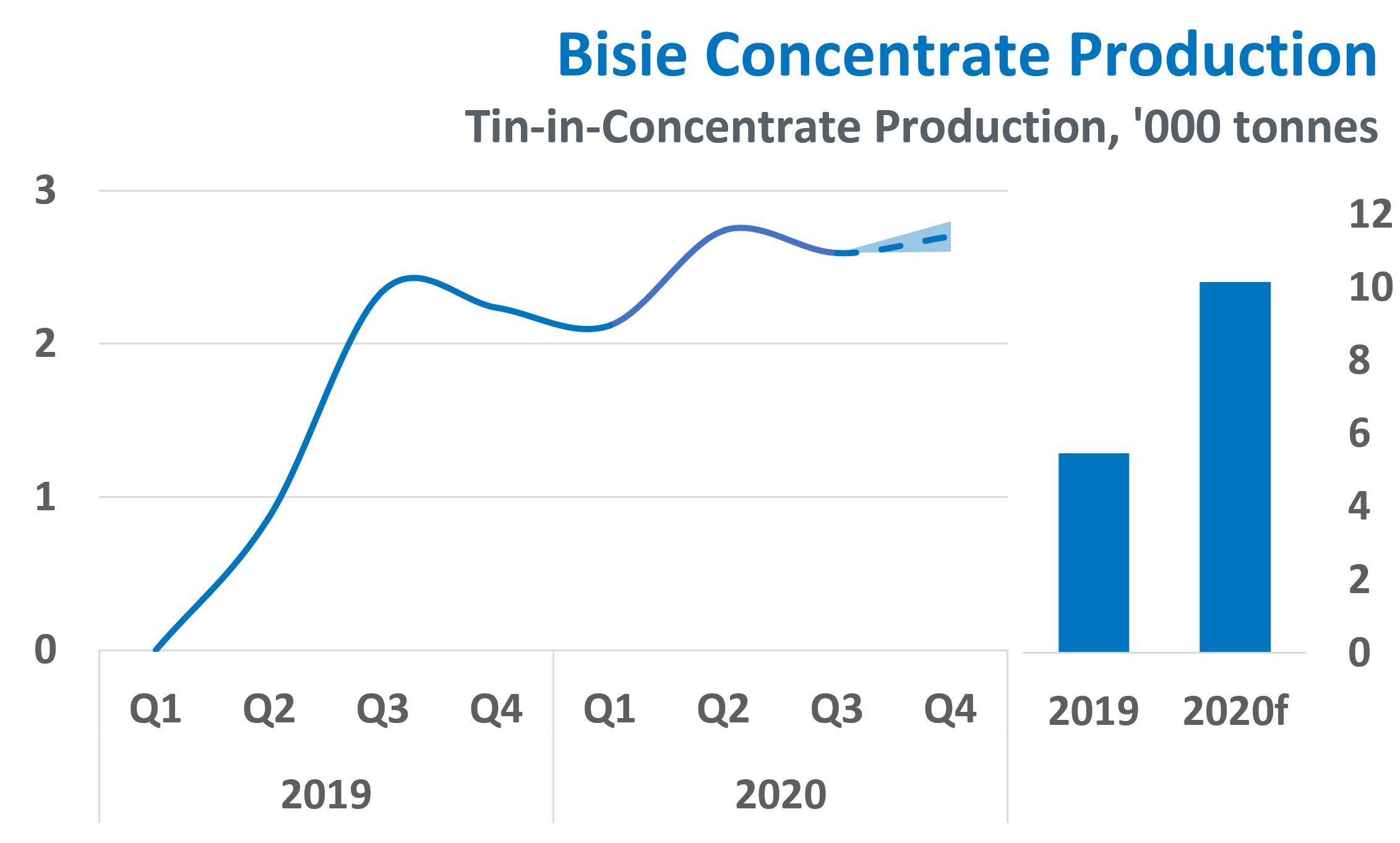Our view: Alphamin’s annual guidance for 2020 is to reach 10,000 tonnes of tin-in-concentrate. With quarterly production having averaged around 2,500 tonnes this year, it is increasing likely that the company will meet its target, even at the lower end of Q4 guidance.