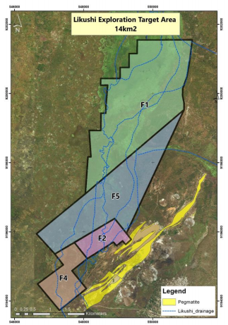 Over time, the Likushi River has changed course, producing new river channels. The old channels represent high-priority targets for miners; Zaïretain carried out detailed drilling and pitting across a wide area, split into five blocks, north of the Manono pegmatites. Results indicated that course-grained cassiterite could be found in a gravel layer, which represented these palaeochannels. In total, it was estimated that the areas contained some 18,666 tonnes of cassiterite.