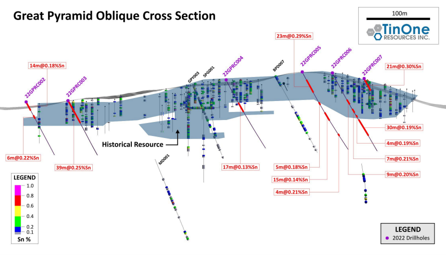 TinOne Resources has received initial assay results from its drilling program at its Great Pyramid tin project.